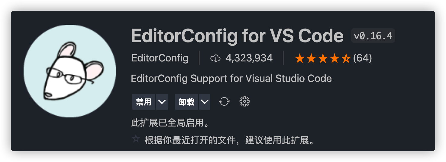 .editorconfig 是跨编辑器维护一致编码风格的配置文件,有的编辑器会默认集成读取该配置文件的功能,但是 vscode 需要安装相应的扩展 EditorConfig For vs Code 。